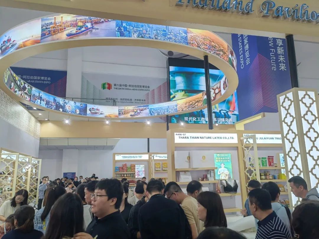 9月21日,第六届中国—阿拉伯国家博览会(以下简称“中阿博览会”)在宁夏银川开幕。本届展会,泰王国商务部国际贸易促进司、泰王国驻成都总领事馆商务处这次共邀请18家企业参展,展品范围主要涵盖食品、饮料、调味品、保健、美容、家居用品等特色泰国产品。 在这里逛展观众可以体验到各样极具泰国特色的商品,比如:榴莲干、乳胶枕、泰式调味料、护肤品等等。