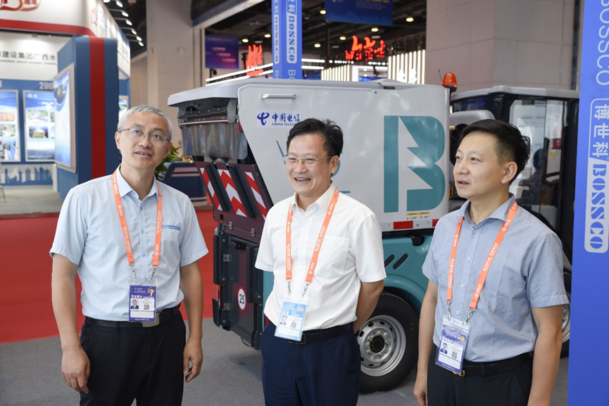 9月16日,生态环境部副部长赵英民莅临博世科展位考察指导,了解博世科技术创新、智慧环卫车核心技术研发等情况,勉励公司加强技术创新,积极参与国际环保产业技术经验交流,推动绿色低碳发展。