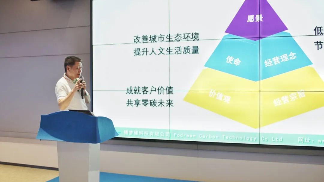 播梦碳科技有限公司董事长李明斌以“数智赋能,碳见未来”为主题,提出以数智化、系统化的方式解决园区的零碳需求,围绕园区业主方、运营方、园区企业、园区公众四大主体通过“智能底座+数字管控+绿色产服”的建设路径,为建设“零碳园区”提出综合解决方案。