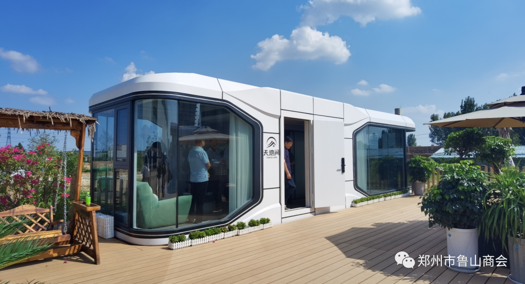 随后,考察团来到了郑州市鲁山商会理事单位鲁山恒海动力谷产业园,现场参观了河南天地间文旅科技有限公司生产的移动太空舱项目。