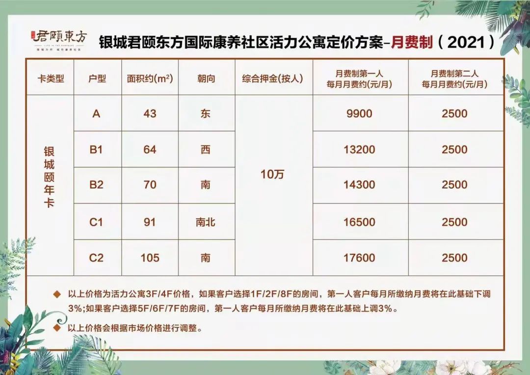 护理之家床位费从3000-10000元不等,押金需缴纳10万元,餐费每月1800元,一次性安置费1500元,护理费1800-8800元不等。
