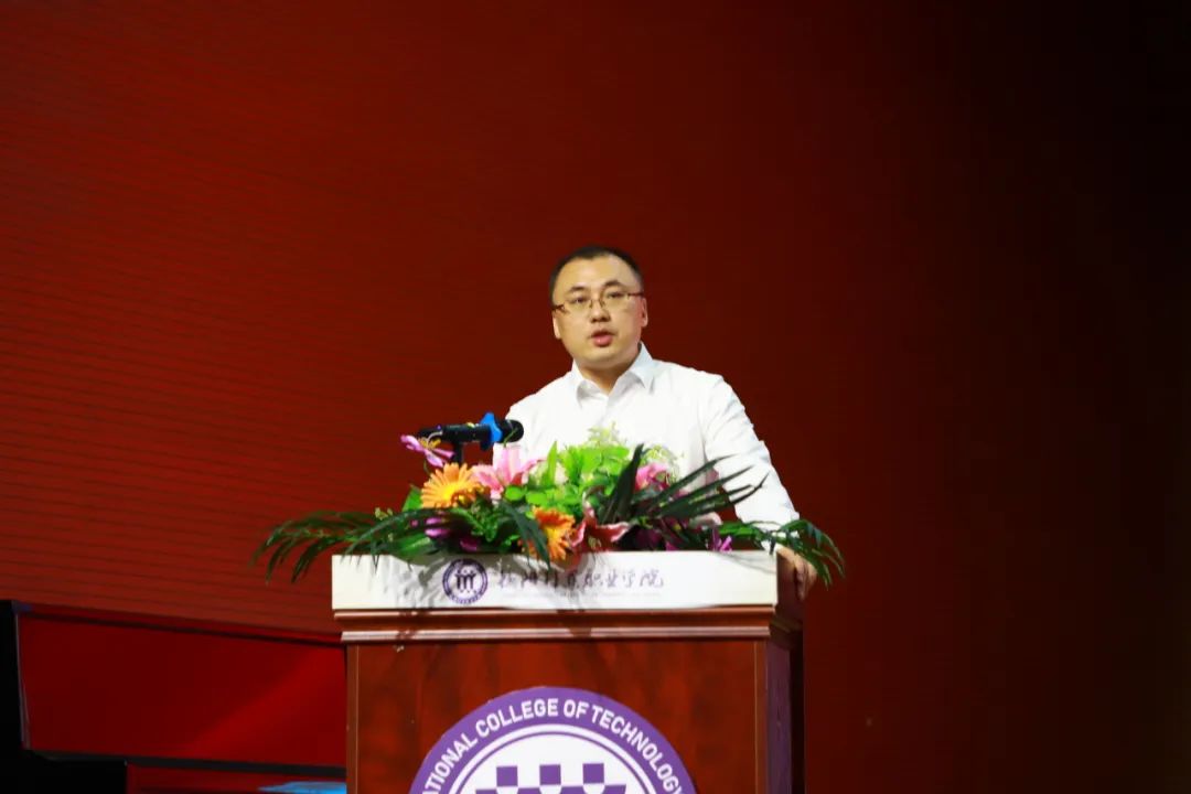教师代表在发言中表达了对新生们的欢迎和祝福,并分享了自己在数字产业领域的从业经验与感悟。他鼓励新生们要勇于追求梦想、不断提升自己的能力和素质,为数字产业的繁荣发展贡献力量。