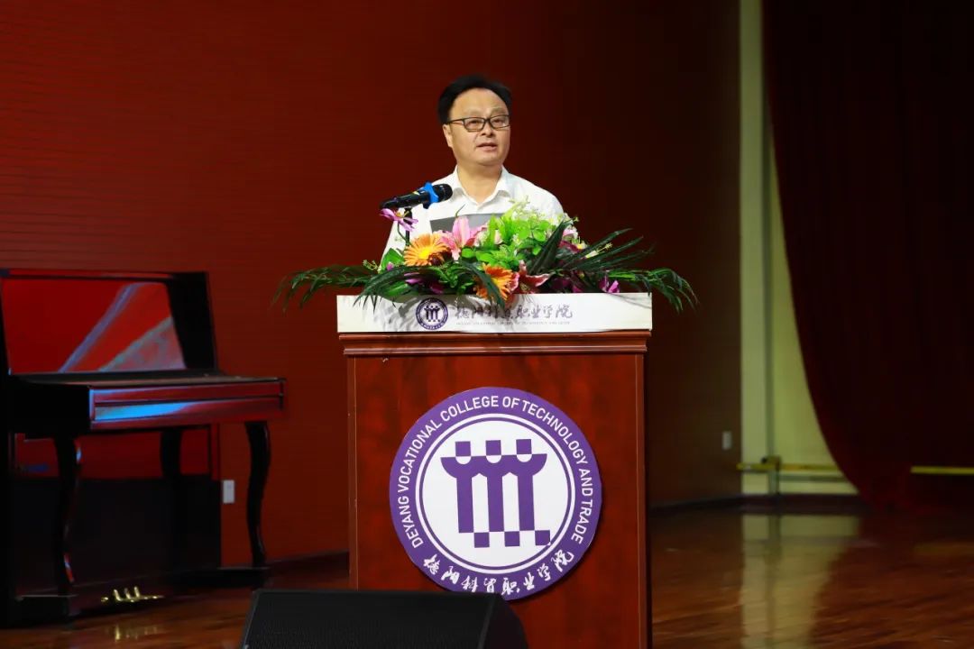 刘钧代表学校理事会对与会的领导嘉宾表示热烈欢迎和衷心感谢,向新同学们表达了最美好的祝愿。他表示,数字产业学院的成立,是德阳科贸职业学院产教融合、校企合作的又一个标志性成果,对学校事业发展具有里程碑意义。