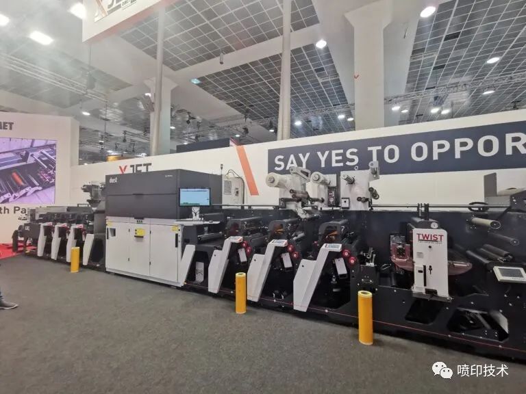 英国柔版、制版设备和喷墨标签印刷机供应商 Dantex 在展会上展出了 PicoJet 1200。作为最新改进,该设备在混合配置中增加了紫色墨水选项和半旋转模切机。此外,还推出了高清版 PicoJet。与众不同的是,HD 版本的规格较低,采用卷对卷配置,卷筒纸宽度仅为 250 毫米。它的印刷速度可达 50 米/分钟,而且只有白色选项,而 Picojet 1200 的印刷速度可达 75 米/分钟。