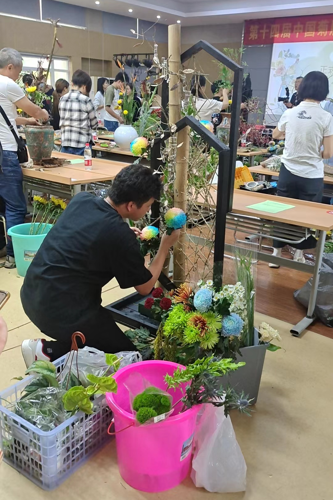 9月22号第十四届中国菊花展览会插花艺术比赛武汉市内选拔赛暨武汉市插花花艺协会菊花插花比赛在武汉市园林科学研究院(科普公园)科普楼举行,经过 5 位评审专家的线上初筛,最终确定 32 名选手晋级线下插花比赛。蒋泽文同学入围参加了四个命题赛道之一的“非命名-现代组”。