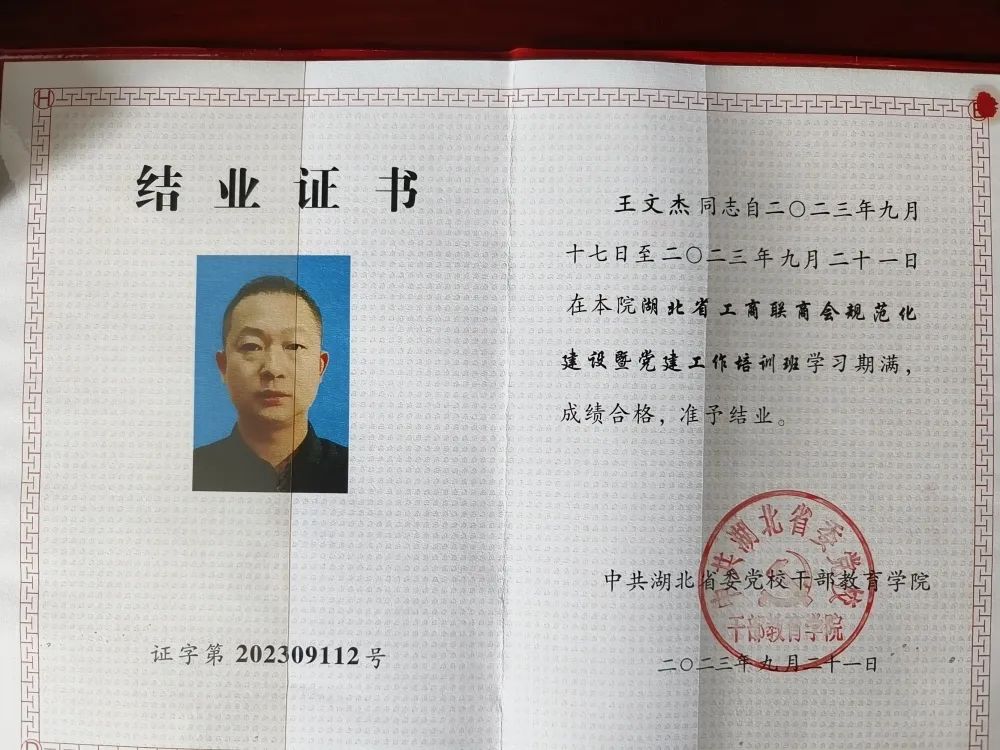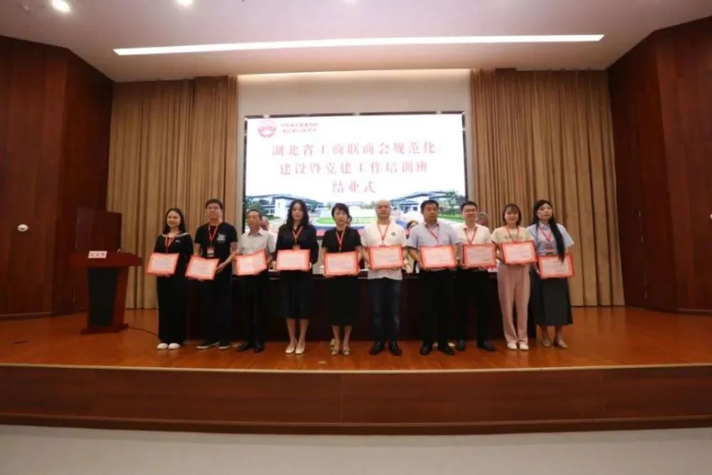 结业仪式上,襄阳市工商联钟鸣、湖北省策划行业协会马威、湖北省环境保护产业协会李赢杰、温州市湖北商会刘志钱和湖北省窗业协会孙明喜等学员作交流发言。会上宣读了《关于表扬2023年湖北省工商联商会规范化建设暨党建工作培训班优秀学员的通报》,并为优秀学员颁发证书。