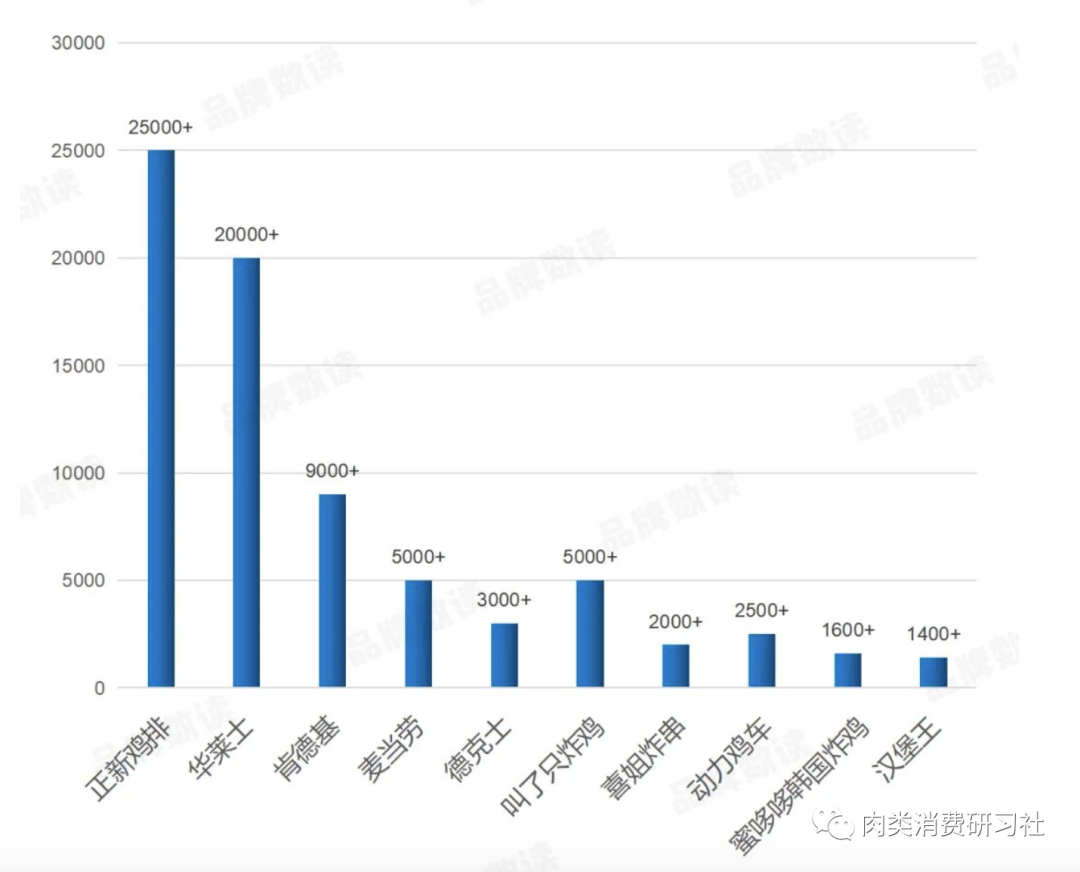 在国内的炸鸡市场参与者众多。其中最具代表性的是肯德基、麦当劳两家作为西式快餐行业头部品牌,两家均持续推出新品和活动,吸引消费者的注意力。截至2022年末,肯德基在中国的门店超过9000家;麦当劳在中国内地的门店数量也超过5000家。