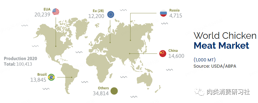可是要知道的是:仅仅20年前,巴西的鸡肉总产量才100万吨!也就是说,这20年间,产量增加了整整四倍。