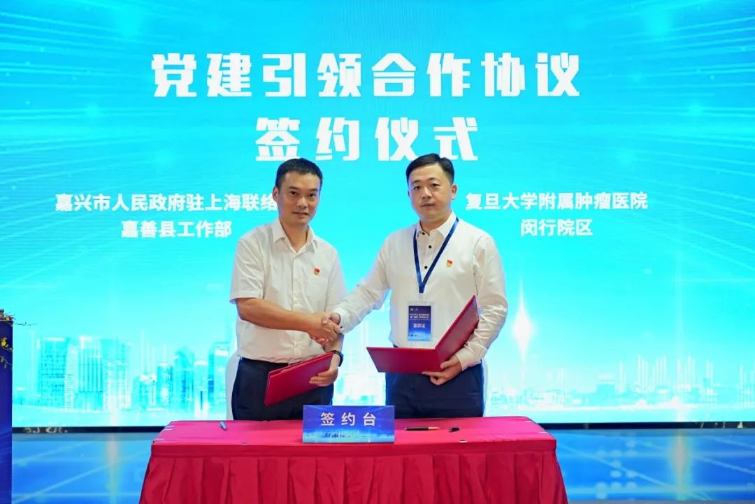 大会上,嘉兴市人民政府驻上海联络处嘉善县工作部、复旦大学附属肿瘤医院闵行院区进行了党建引领合作协议签约;上海市嘉善商会与上海科技发展基金会进行了战略合作框架协议签约;上海市嘉善商会与中国工商银行上海市闵行支行进行了金融服务战略合作协议签约。