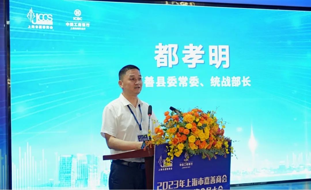 嘉善县委常委、统战部长都孝明出席会议并致辞。都部长在致辞中表示,企业家是经济社会发展的宝贵财富,商会是团结凝聚企业家力量的有效载体,在沪善商是联结沪善资源的重要环节。希望商会能够建好凝聚会员的“引领之家”、团结会员的“连心之家”、服务会员的“成长之家”、成就会员的“建功之家”。