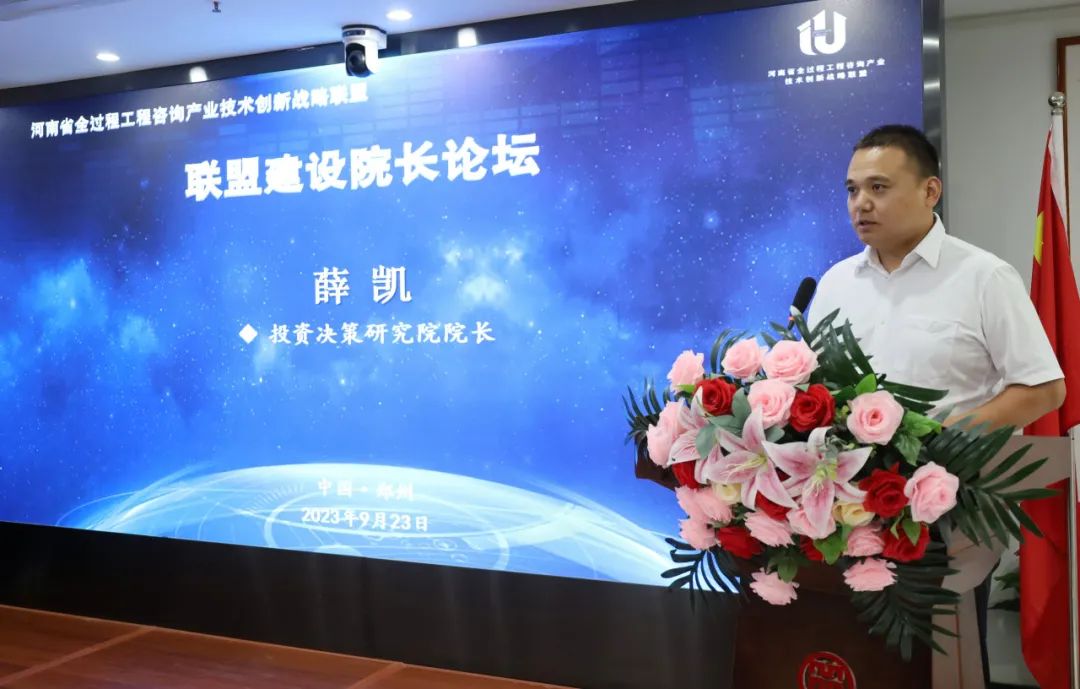 2023年9月23日下午,河南省全过程工程咨询产业技术创新战略联盟联盟建设院长论坛在联盟会议室召开,河南省全过程工程咨询产业技术创新战略联盟理事长、中新创达咨询有限公司董事长杨明宇出席会议,联盟各研究院负责人及联盟单位代表参加会议。会议由工程改造与城市更新专业联盟理事长李建光主持。中科国评科技研究院院长、联盟投资决策咨询研究院院长薛凯,中科国评科技研究院副院长、联盟投资决策咨询研究院秘书长杨占路受邀参加了会议。薛凯院长做了“创新驱动业务发展”的主旨演讲。
