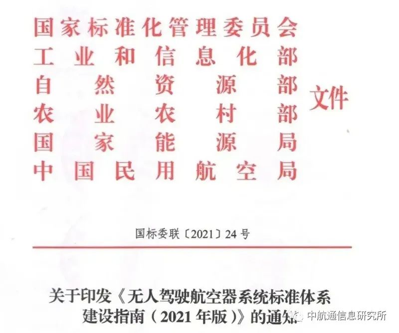 国家标准委等6部委联合印发《无人驾驶航空器系统标准体系建设指南(2021年版)》,全面统筹规划全国无人驾驶航空器系统领域标准化工作,为行业监管提供监管支撑,提高无人驾驶航空器系统行业管理水平,规范行业发展、市场秩序和行业行为。