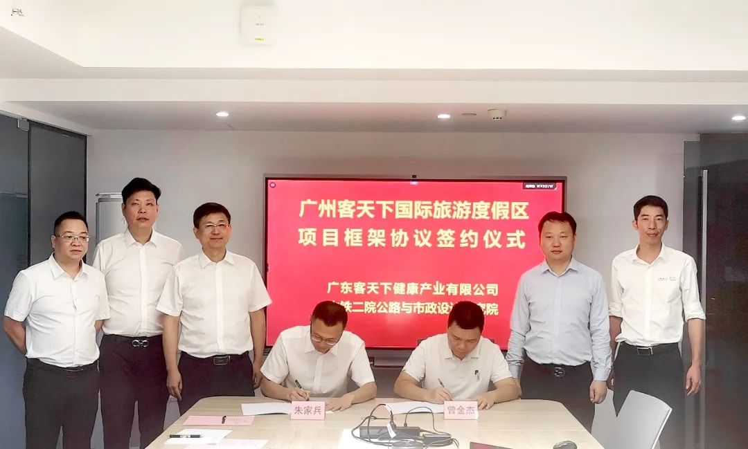 9月22日,为进一步发挥产业优势,进行深度资源整合,推动乡村振兴高质量发展,中铁二院工程集团有限责任公司与广东鸿客实业集团有限公司签订战略框架合作协议,共同深度打造文旅康养综合体。中铁二院公路市政院院长朱家兵、副院长朱分清,鸿客集团副总裁兼广州公司总经理曾金杰、广州公司副总经理魏正强等人参加本次签约仪式。
