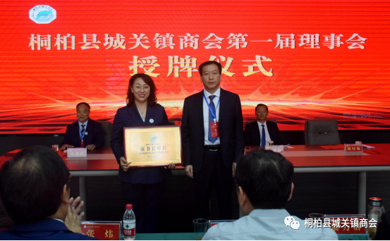 大会向商会新当选的会长、荣誉会长、常务副会长、副会长、秘书长颁授了证书以及牌匾。