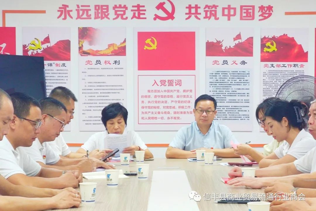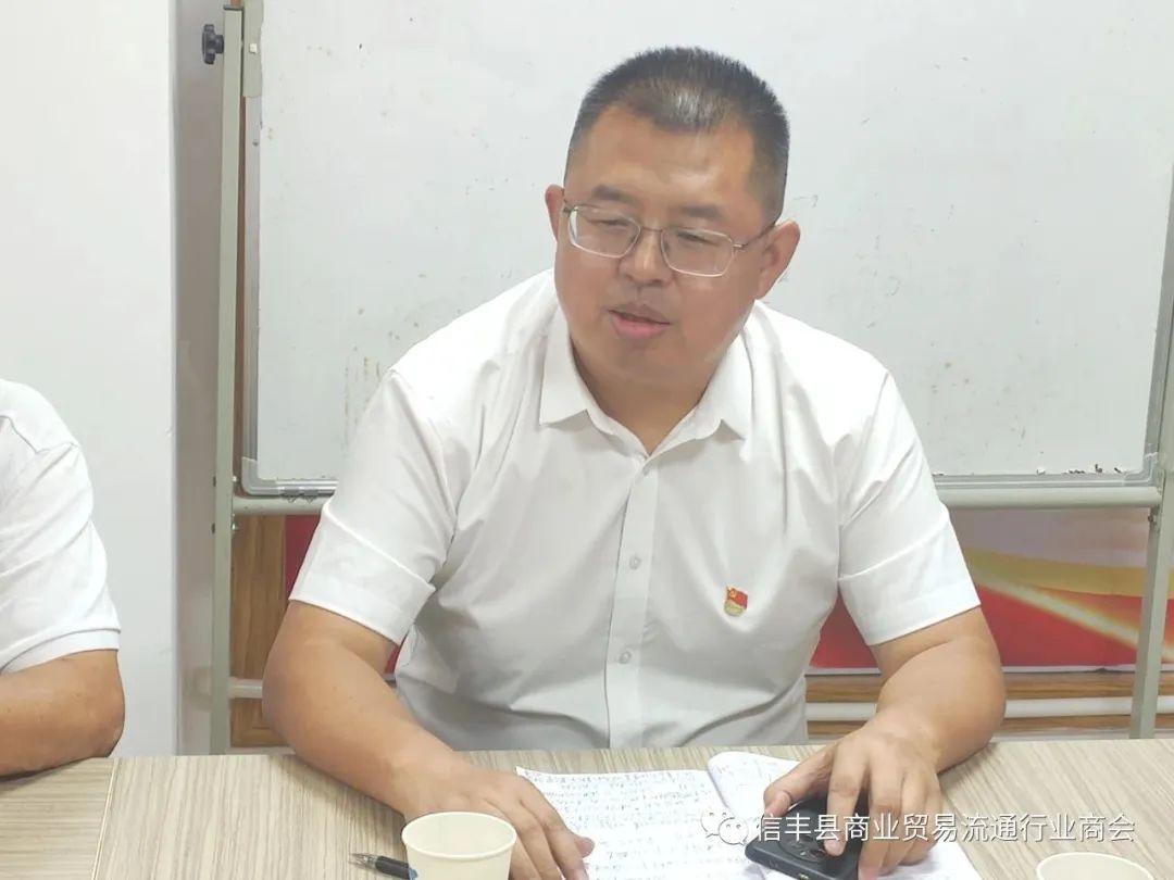 金秋时节,橙乡一派丰收景象!9月22日,信丰县商业贸易流通行业商会党支部迎来了换届大会的召开。会议由商会党支部书记于建华主持。县委统战部副部长、县工商联党组书记、县非公经济党委书记郭昌福同志,县工商联党组成员、副主席肖萍同志参会指导本次换届选举。