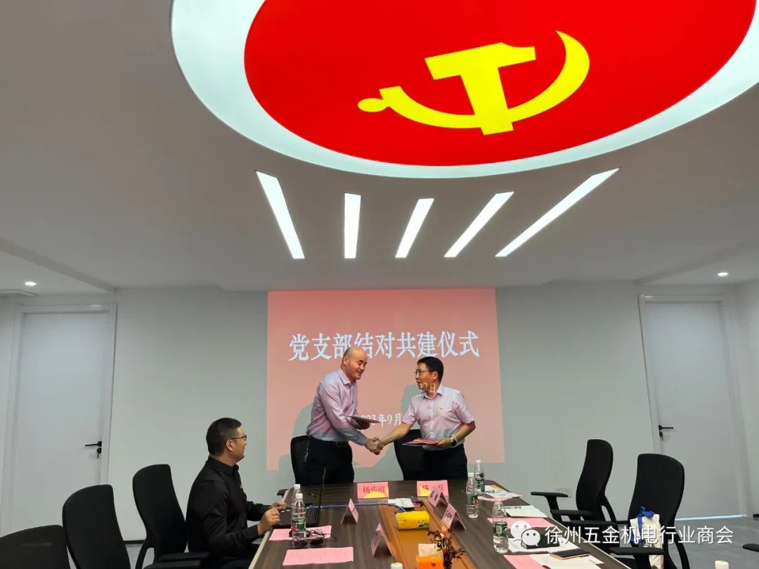 2023年9月22日,徐州五金机电行业商会党支部与市医保中心第一党支部举行结对共建签约仪式,签订了结对共建协议书。