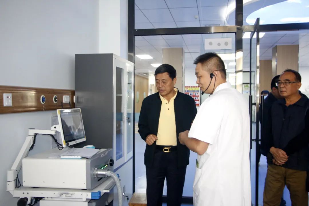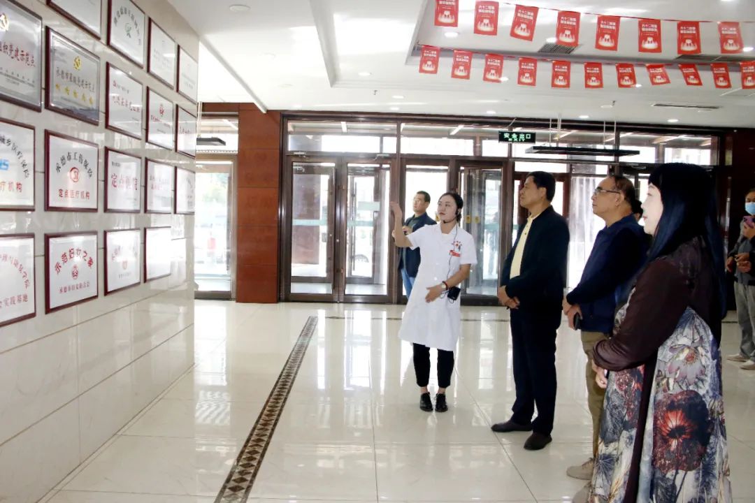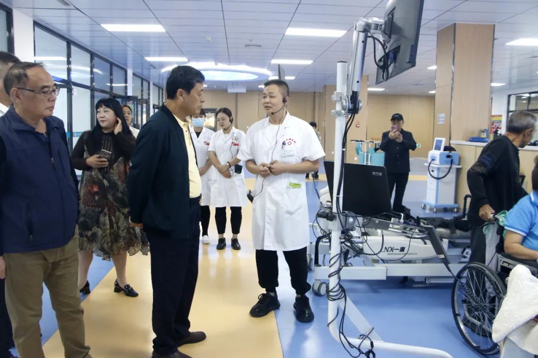 随后,胡主席领导一行在我院副院长徐颖的引领下,先后参观了我院康复治疗大厅、无陪护病区及住院病区等区域,对我院先进的康复设备、优质的服务理念、舒适的治疗环境给予高度认可。