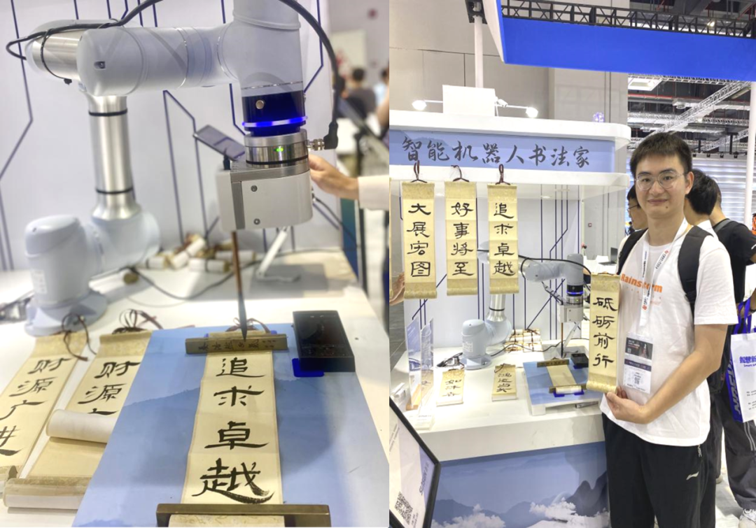 吸墨、提笔、挥毫,行云流水间一对对四字成语跃然纸上,“文里文气”与“科里科气”的奇妙碰撞令协作机器人书法家备受瞩目。在现场,特邀智能书法家题字——“追求卓越”,寓意着,作为我校“卓越工程师教育培养计划”先行示范点,机器人学院始终坚持在卓越工程师的培养道路上不忘初心,砥砺前行。