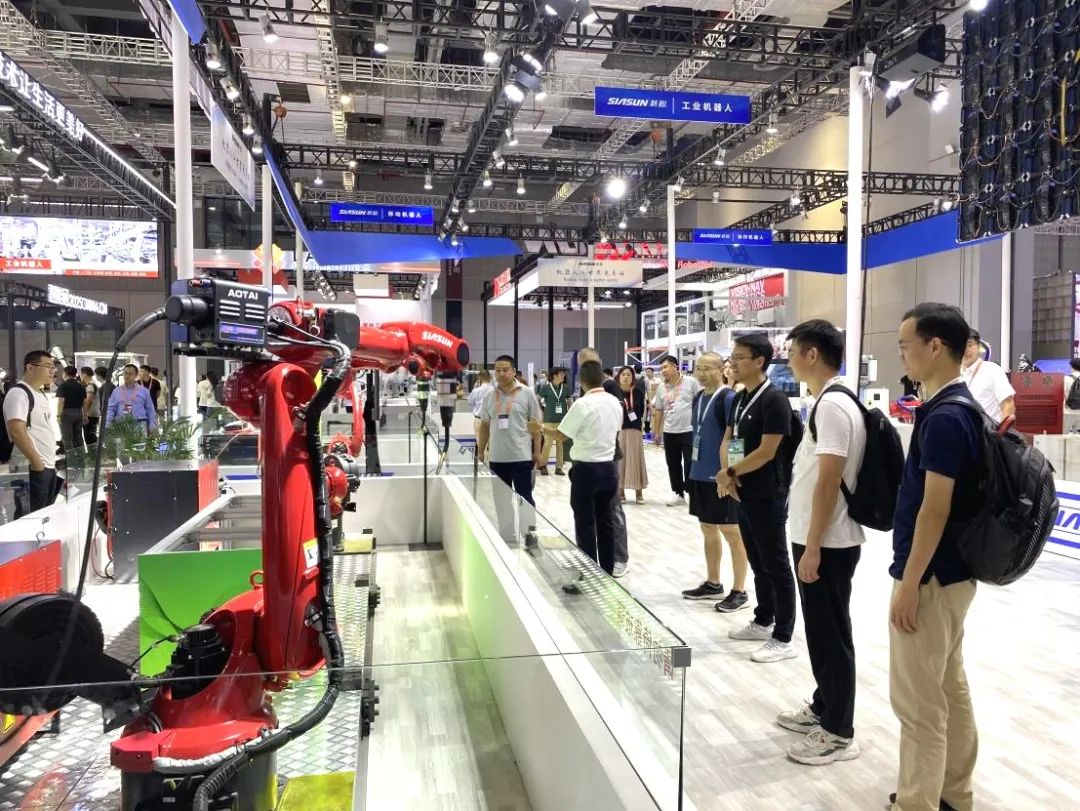 会展现场,展出4台SR210D工业机器人组成的白车身点焊工作站,转为点焊应用量身定制,焊接效率高达2.2s/点,实现行业领先。该工作站已在知名国产汽车厂商高端车型生产线上成功应用,标志着我国工业机器人已经跨入高端应用行业,对加快我国汽车制造装备国产化起到积极的引领示范作用。