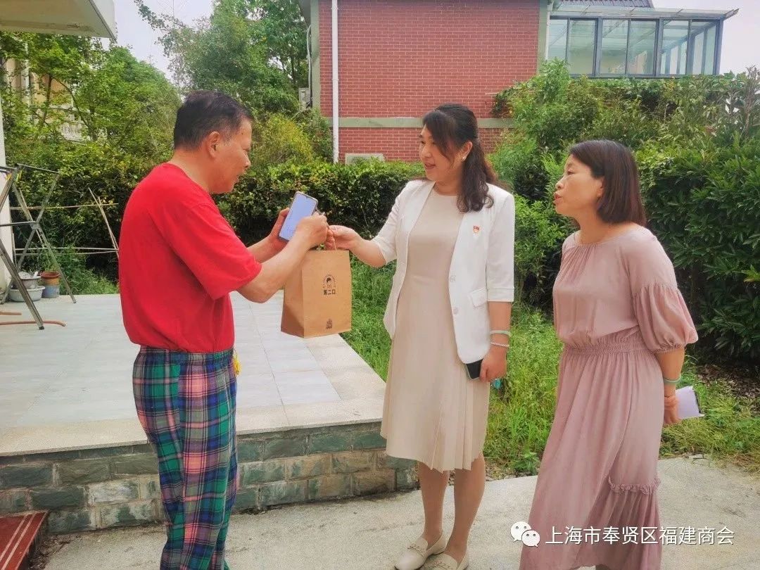 区福建商会党支部为海墅社区特殊群体赠送中秋鲜肉月饼,送上节日的祝福。