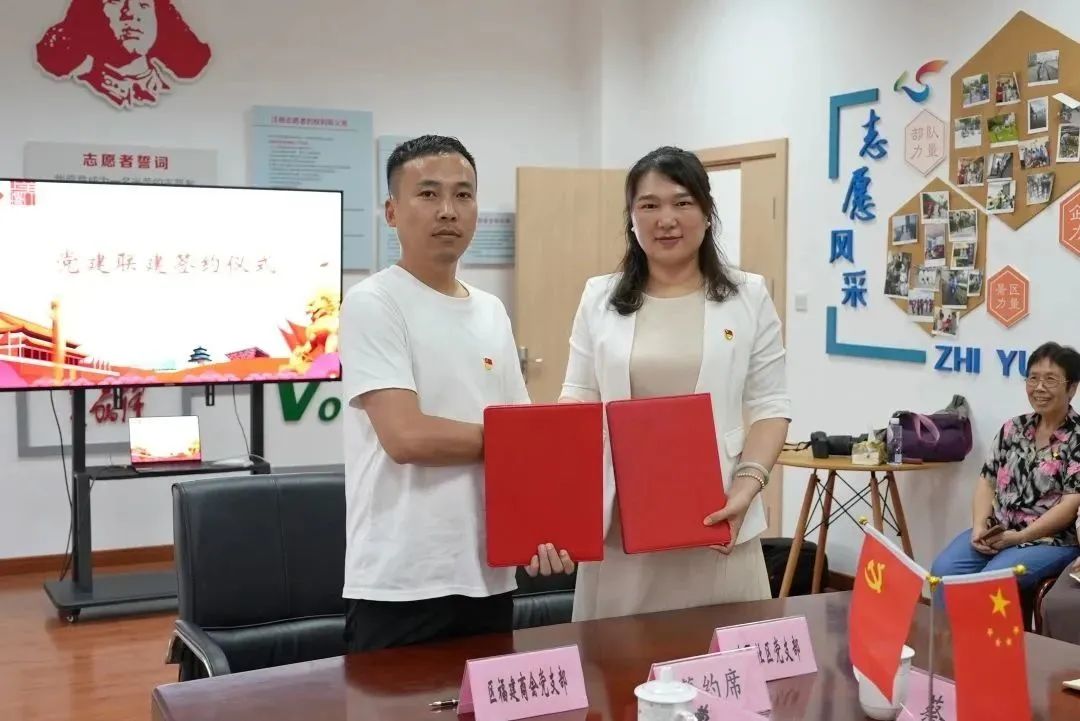 区福建商会党支部和海湾旅游区海墅社区党支部签订党建联建协议书。