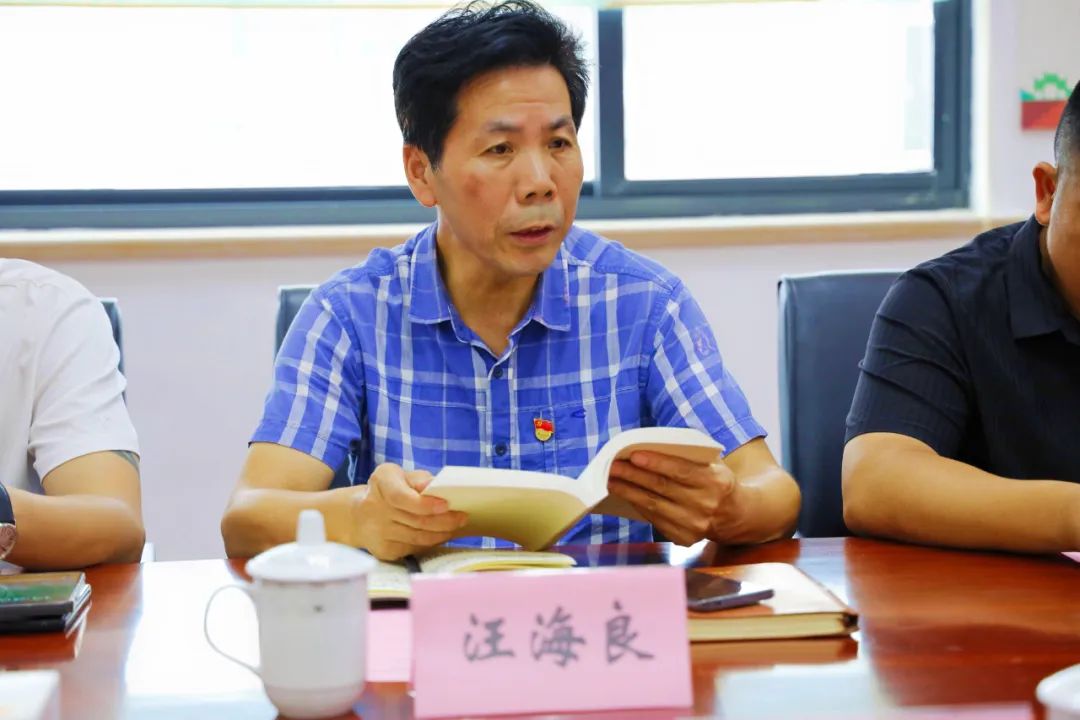 区福建商会党建指导员汪海良导读《习近平新时代中国特色社会主义思想专题摘编》。