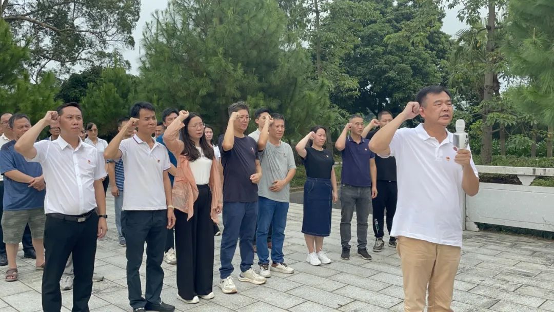 全体人员向英勇先烈献花,默哀!党员重温入党誓词!