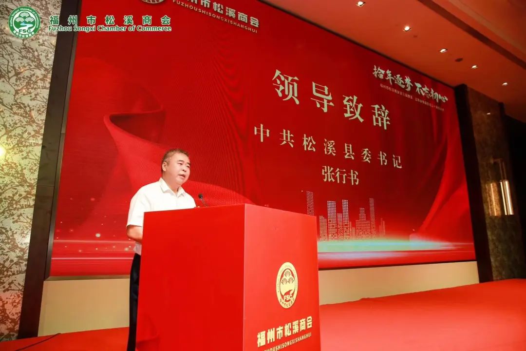县委书记张行书代表松溪县四套班子向新当选的会长、副会长、理事、监事表示热烈的祝贺!向全体会员、乡贤和在福州的松溪乡亲表示诚挚的问候!他表示,福州松溪商会自成立以来,主动参与“回归工程”,慷慨解囊兴教助学,热心捐助支持灾后重建,牵线搭桥推动两地经贸文化交流,投资兴业造福家乡人民,在推动家乡经济社会发展上取得丰硕的成果。