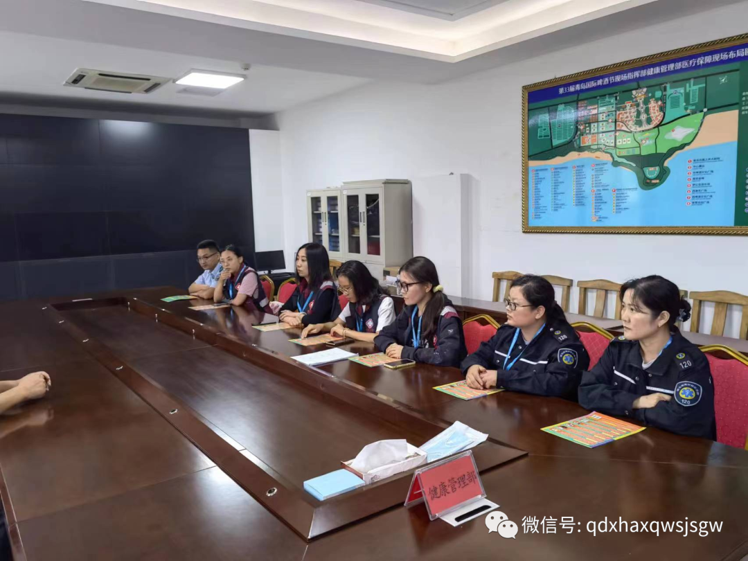博览会举办前期,根据 2023黄河流域跨境电商博览会指挥部工作安排,区卫生健康局抽调专业人员组建健康管理部,参加卫生健康保障服务。参与驻场保障工作人员由院感专家、疾控工作人员、卫生综合执法人员、基层社区卫生服务中心及院前急救人员组成,分别来自区中心医院、疾控中心、执法大队、薛家岛社区卫生服务中心、富春江路社区卫生服务中心等单位,为博览会提供良好的院感防控指导、风险监测预警、卫生督查、卫生知识科普及院前急救工作。工作人员提前驻场工作,在博览会开幕前对各场馆进行实地督查指导,全面监测预警,指导主办方做好场所通风、消毒消杀等工作,确保博览会顺利举办。