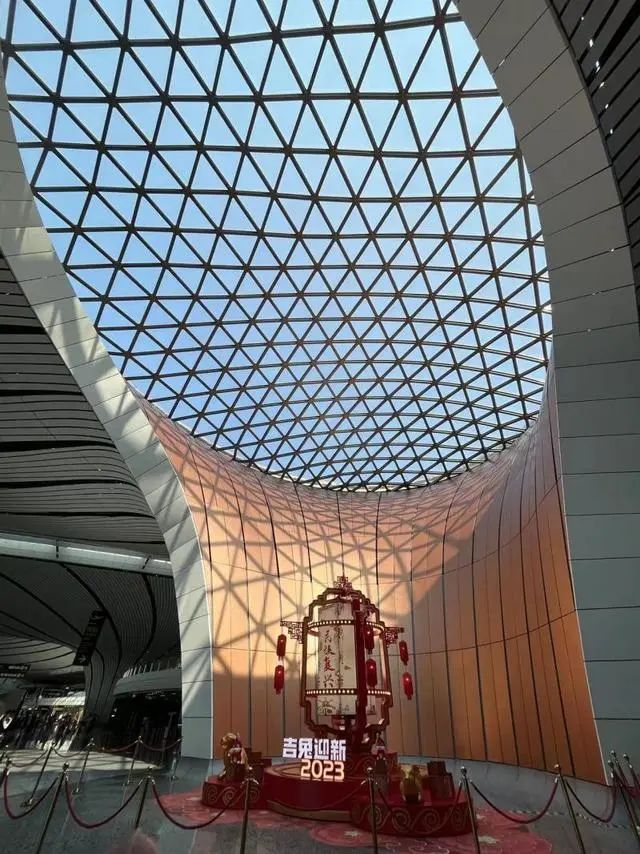 从上空俯瞰,大兴机场整体造型宛如展翅的凤凰。它也因高颜值一度成为网红打卡地,这座机场不仅是全球最大的国际消费枢纽,也是全北京唯一拥有货运跑道的机场。随着疫情政策优化调整,今年大兴机场整体运营情况稳步回升,客货运航班、国际航线快速恢复。而伴随暑期的来临,机场也更加忙碌了。