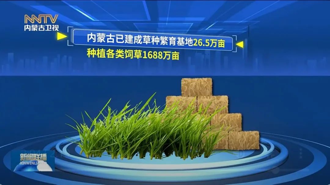目前,内蒙古已建成草种繁育基地26.5万亩,种植各类饲草1688万亩,预计全年饲草产量将达到8300万吨,全产业链产值突破800亿元, 内蒙古草产业正在跻身千亿级产业队列。
