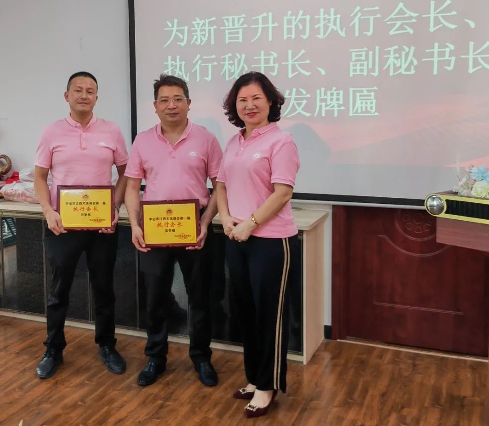 刘小楠会长为新晋升的执行会长吴芳福、万里权和陈宜海颁发牌匾。欧正民监事长为新晋升的执行秘书长吴文均和副秘书长李阳静、吴文杰颁发牌匾。