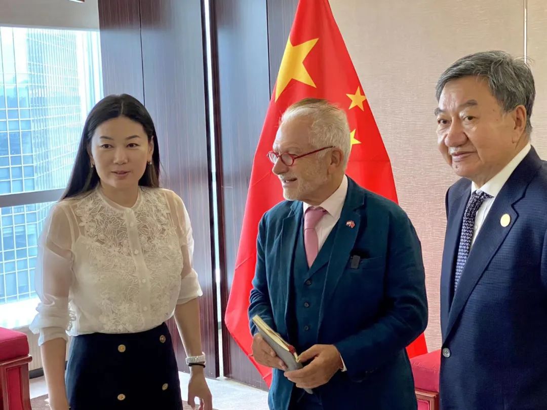 9月5日上午,奥中商会经贸代表团一行访问全球服务贸易联盟(以下简称服贸联盟)并进行座谈交流。服贸联盟理事长、商务部原副部长、中国贸促会原会长姜增伟亲切会见,并对我方代表团来访来访表示欢迎。奥中商会执行副会长张红鸽、奥中教育有限责任公司总裁张红洋、奥中商会中国区秘书长刘晓旭、执行副会长助理刘啸捷、以及涵盖生物医药、文化教育、贸易等领域的奥地利经贸团队随同访问。