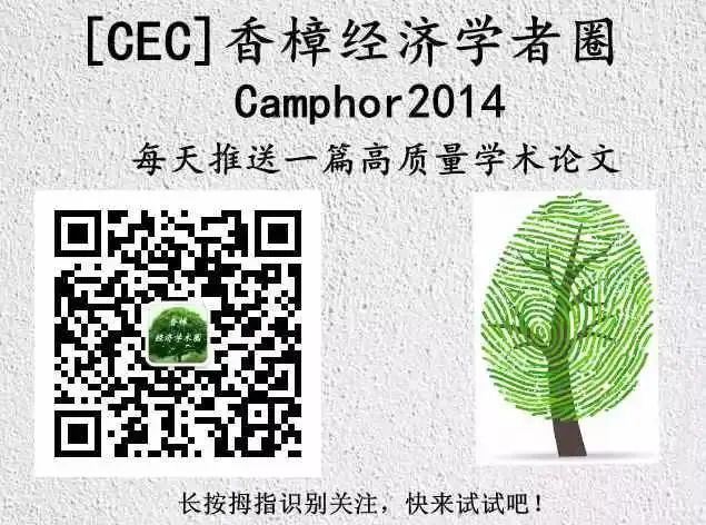 “分享”是一种学者的人文情怀,香樟经济学术圈欢迎广大订阅读者(“香粉”)向公众平台投稿,也诚邀您加入香樟推文team。生活处处皆经济,经济处处现生活。如果你或者身边的朋友看了有趣的学术论文,或者撰写了经济政策评论,愿意和大家分享,欢迎投稿(经济金融类),投稿邮箱:cec2022@126.com。如果高校、研究机构、媒体或者学者,愿意与平台合作,也请您通过邮箱联系我们。投稿前请在搜狗的微信搜索里搜索已有图文,避免重复。