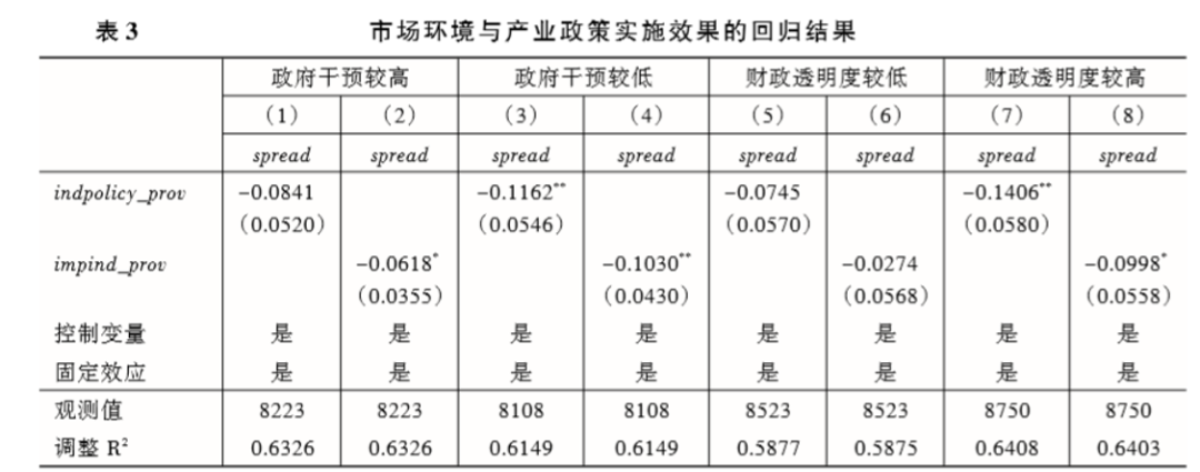 (一) 地方产业政策对企业融资成本的影响