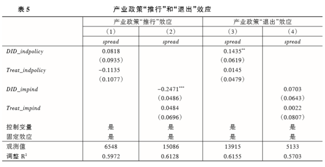 在一般产业政策支持期间,企业融资成本更低的原因并不源于政策“推行”带来的政府支持效应,而是源于政策“退出”恶化了企业融资环境,造成了受一般产业政策持续支持与未持续支持的企业间融资成本的差异。而重点产业政策降低企业融资成本主要源于政策“推行”对企业带来的支持效应。