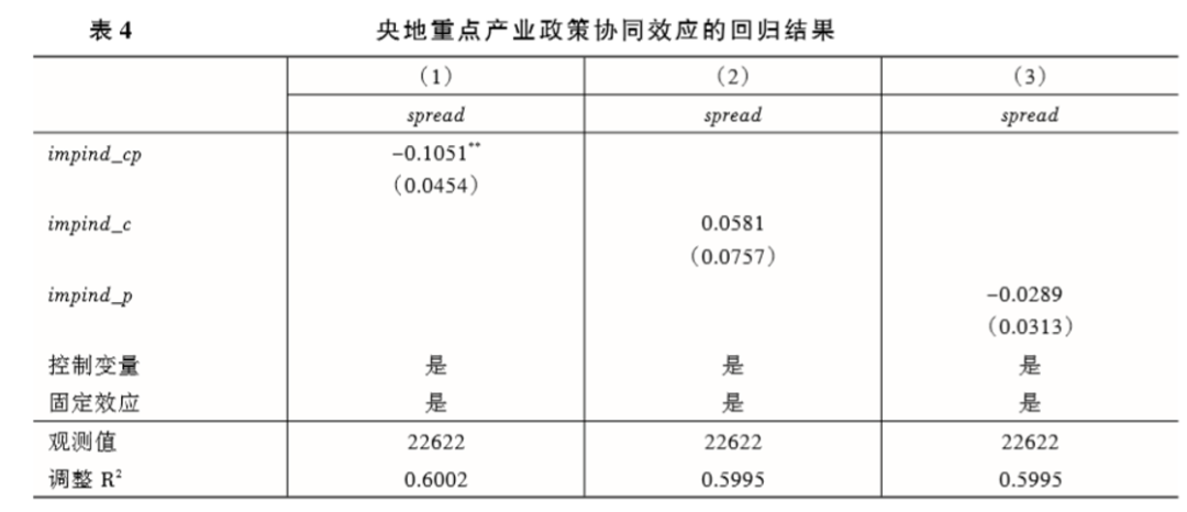 在所有估计结果中,地方产业政策的回归系数均显著 为负,验证了本文地方产业政策能够降低企业融资成本的核心观点。,重点产业政策对企业融资成本的抑制作用高于一般产业政策,原因在于 地方政府对重点产业政策的支持力度更强、配套措施更为完备。