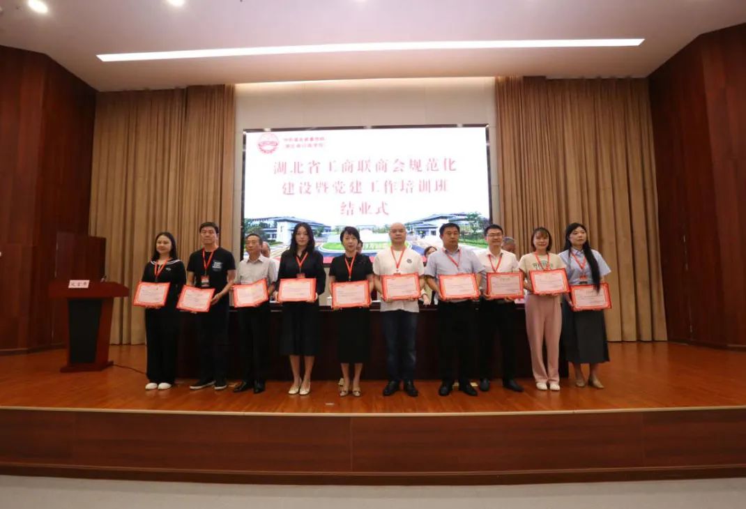 结业仪式上,襄阳市工商联钟鸣、湖北省策划行业协会马威、湖北省环境保护产业协会李赢杰、温州市湖北商会刘志钱和湖北省窗业协会孙明喜等学员作交流发言。会上宣读了《关于表扬2023年湖北省工商联商会规范化建设暨党建工作培训班优秀学员的通报》,并为优秀学员颁发证书,范德明荣获优秀学员称号。