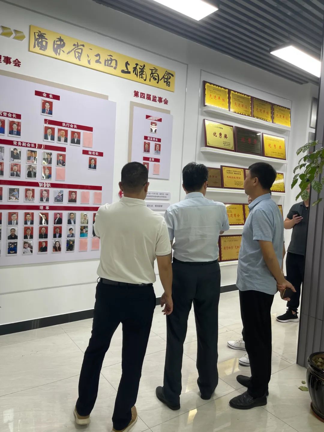 张会长带领考察团一行参观了商会,并在会议室进行了座谈交流。在座谈中,张会长首先对家乡领导的莅临考察指导表示热烈欢迎和衷心感谢,同时介绍了商会换届以来的发展、工作情况。大家一同观看了商会十周年宣传片。随后由钟祥飞董事长作了赣州经济技术开发区经济社会发展情况介绍。