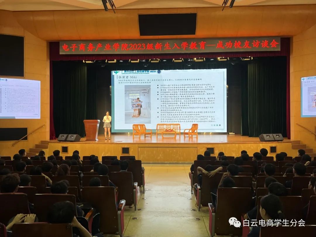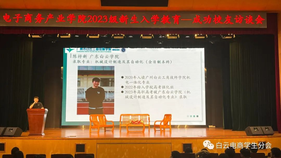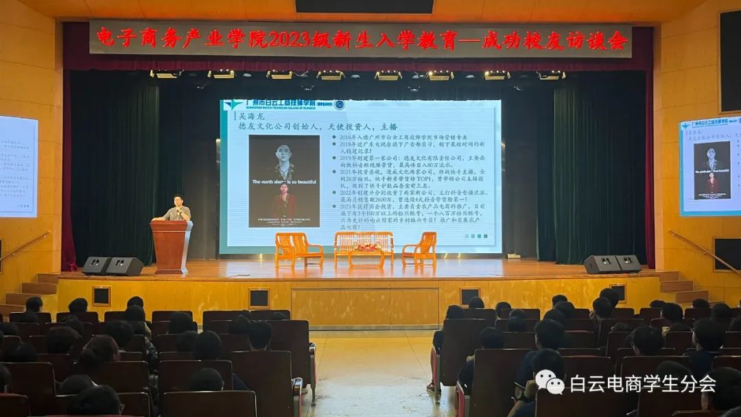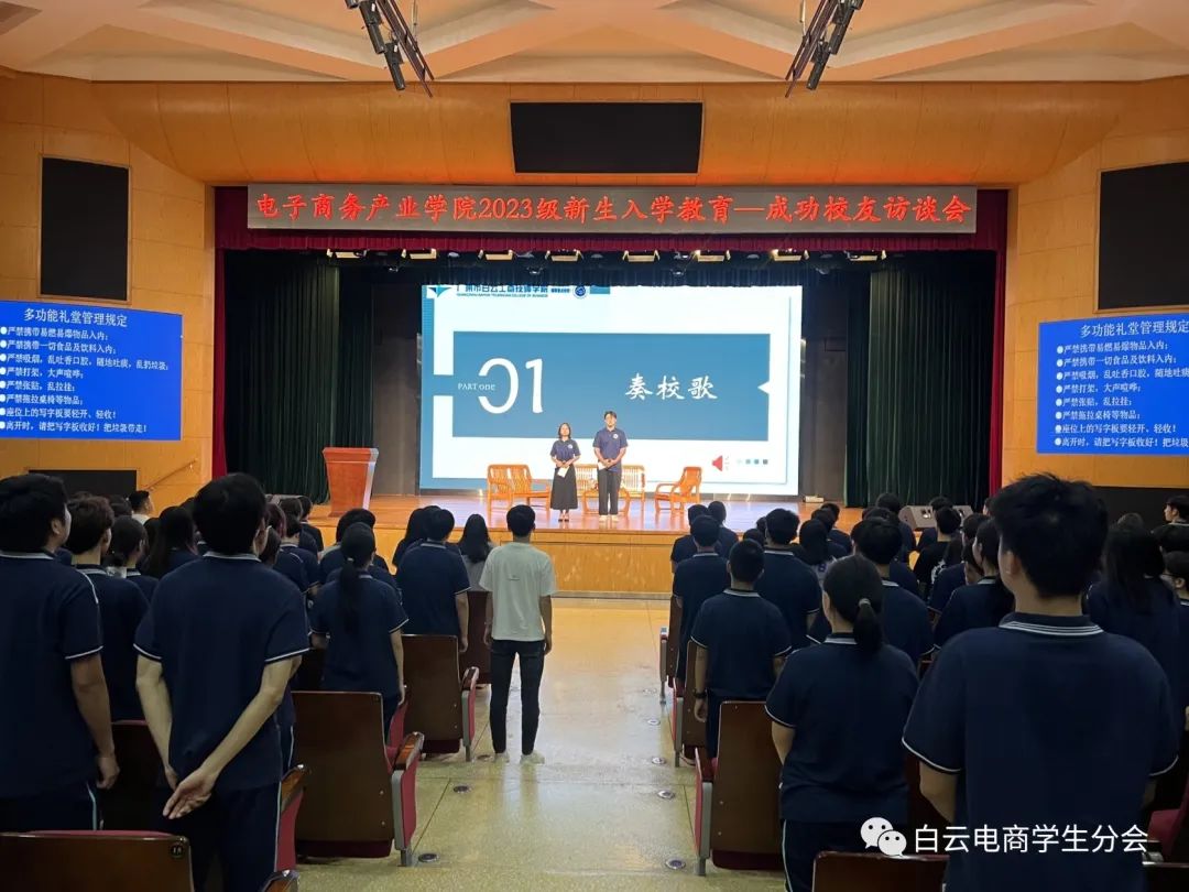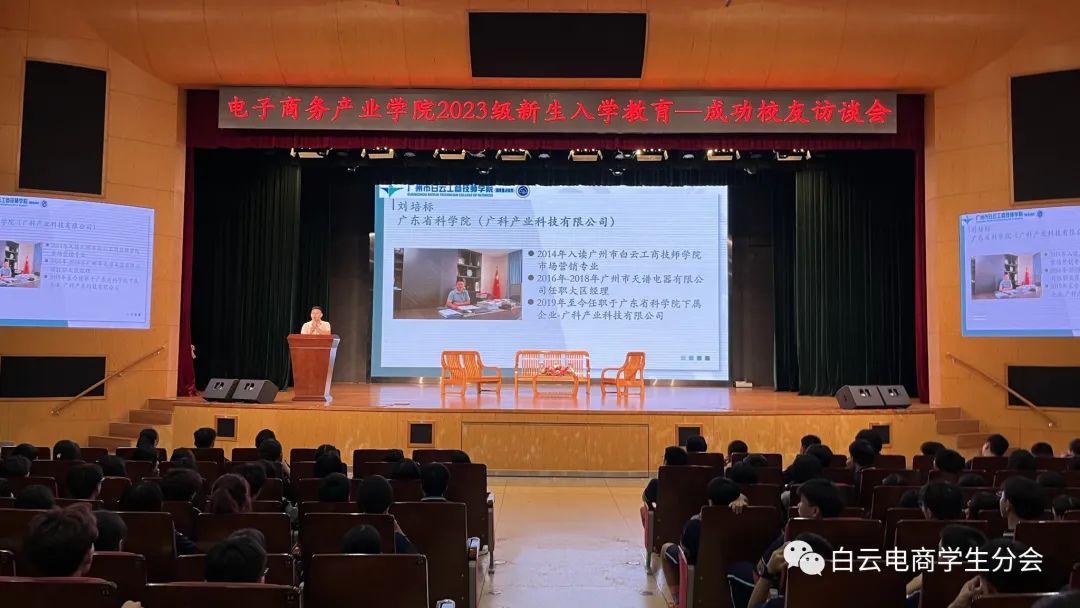 广州市白云工商技师学院电子商务产业学院于2023年9月21日在大礼堂举行了2023级新生入学教育——“重建自信·筑梦启航”成功校友访谈会。