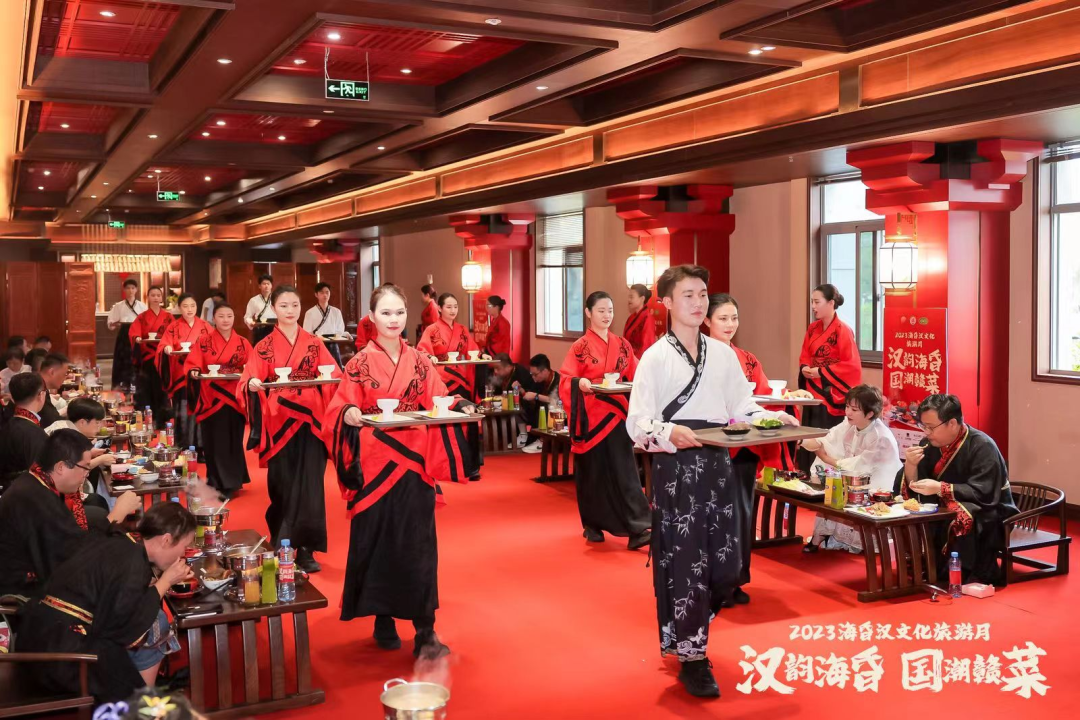 品尝汉宴、体验汉服、聆听汉乐、学习汉礼、观赏汉舞,是一场汉文化的集中展示。商务部门有关领导参加了此次活动。季季红火锅,梦圆春、柴米油盐、蓝边碗.赣友记、方鲜等等餐企,制作特色赣菜美食饮品,为游客奉献了精彩纷呈的风味盛宴。