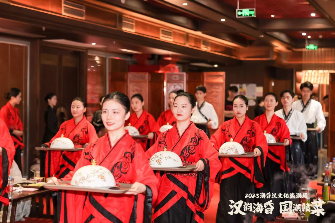 本届海昏汉文化旅游月以“汉韵华章·儒沐海昏”为主题,从9月23日一直持续到10月23日,涵盖中秋国庆黄金周。活动包括汉服、汉乐、汉舞、汉礼、美食、游艺等内容,对汉代的历史文化、饮食礼仪、日常生活等方面进行集中展示,让游客真切感受到汉文化的魅力。值得一提的是,“国潮赣菜节”一边让游客免费品尝赣菜美食和当地火锅,一边了解江西美食文化。