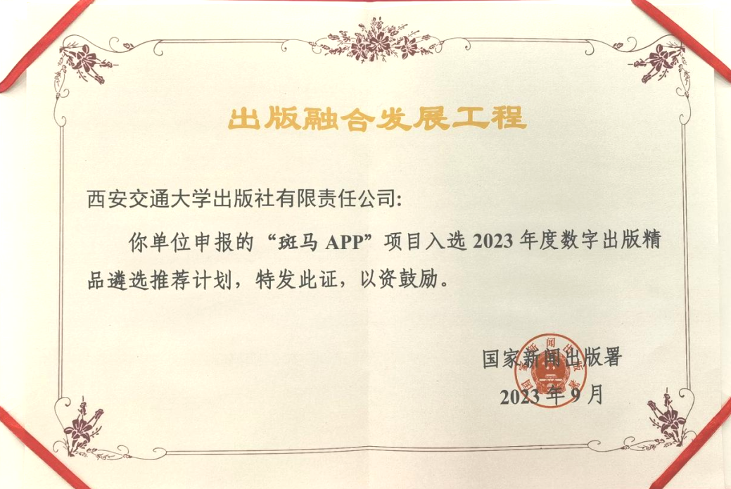 值得一提的是,西安交通大学出版社申报的斑马APP成功入选了2023年度数字出版精品遴选推荐计划。这一荣誉不仅是对我社在数字出版领域努力与成就的认可,更是对我社在传统出版与数字技术深度融合方面积极探索和坚定决心的肯定。