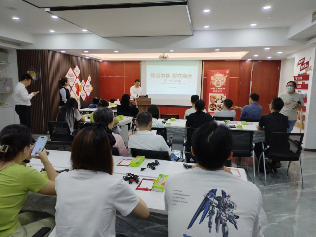 在中秋佳节来临之际,为进一步弘扬中华民族传统文化,做好民营企业金融服务工作。9月21日下午,在阿拉城3号楼M层心驿虹桥阵地举办了“情满中秋·爱在商会”主题活动。此次活动由虹桥镇商会主办,中国工商银行虹南支行协办,金汇区域内共计20余家企业代表参加。