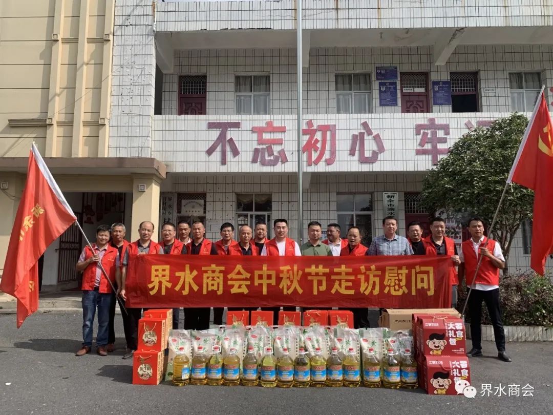 为弘扬中华民族尊老、助困的传统美德。中秋佳节来临之际,9月25日上午,界水乡党委副书记、乡长丁菊平、界水乡四级主任科员李真、界水商会会长周云平、党支部专职副书记钟志杰、常务副会长胡绍纯、周自平组织商会成员慰问了界水乡颐养之家及敬老院的老人们,为老人送上了食用油、大米、红枣礼品、月饼等慰问品。慰问活动为老人们带去了满满的祝福,更是精神上的慰藉,希望他们度过一个欢乐、祥和的节日。