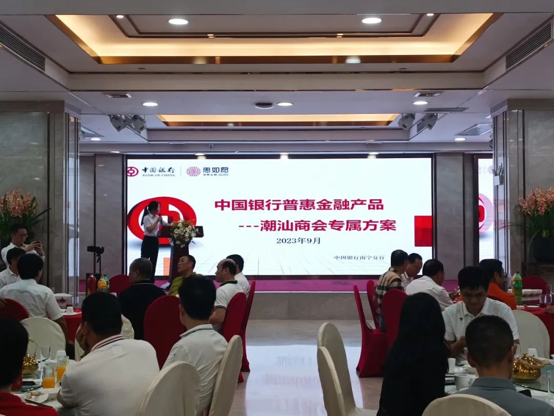 会上,还邀请了中国银行南宁分行的领导进行了金融知识讲座培训,讲解了中国银行私人银行服务、潮汕商会金融产品专属方案等内容。