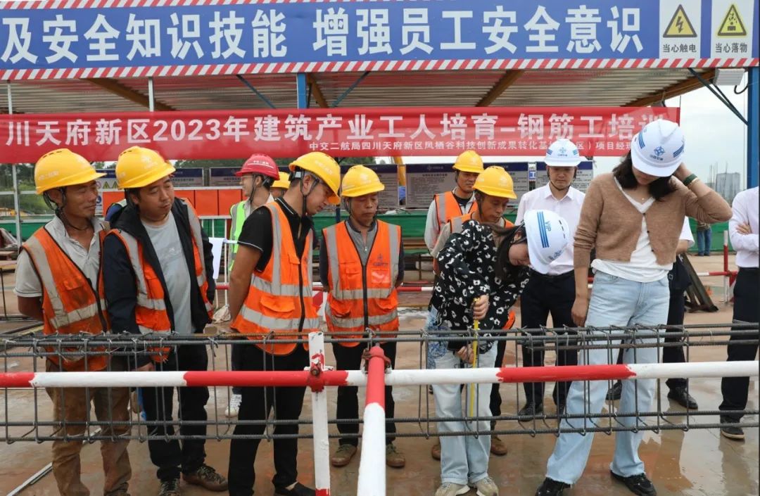 四川天府新区2023年建筑产业工人培育-钢筋工培训在凤栖谷项目举行