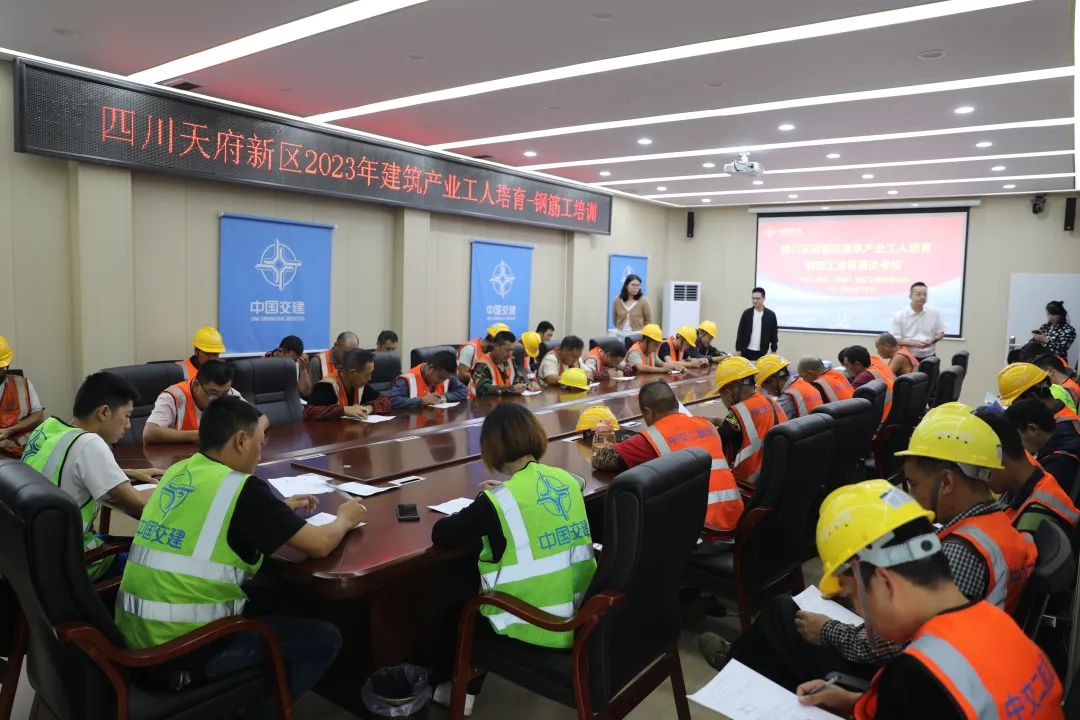 9月25日,四川天府新区2023年建筑产业工人培育-钢筋工培训在公司凤栖谷科技创新成果转化基地项目现场举行,本次培训由四川天府新区公园城市建设局主办,中交二航局承办, 培训对象为钢筋工工种,共计60名一线工人参加本次考核培训。