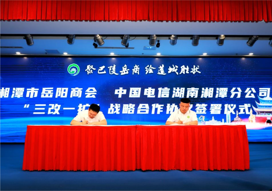 会上,湘潭高新区作招商引资专场推介,湘潭市岳阳商会与湖南力合创新发展有限公司签订战略合作协议,中国电信湖南湘潭分公司与湘潭市岳阳商会签订“三改一扩”战略合作协议,中国邮政储蓄银行湘潭市分行向湘潭市岳阳商会授信20亿元。