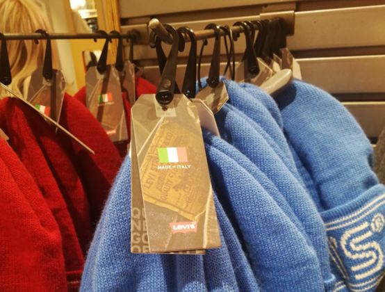 9.皮带:意大利,这也是我第一次看到有发达国家制造出现,而且非常有意思,除了皮带之外,还有毛线帽子也是意大利制造,而且意大利制造在Levis享受了特殊的待遇,李维斯专门做了个标牌,上面不仅印着意大利国旗,而且非常醒目的标明Made in Italy。这是包括Made in China在内的其他国家制造所没有的待遇,其他国家制造的服装,你只能翻开衣服里面的标签仔细才能看到。
